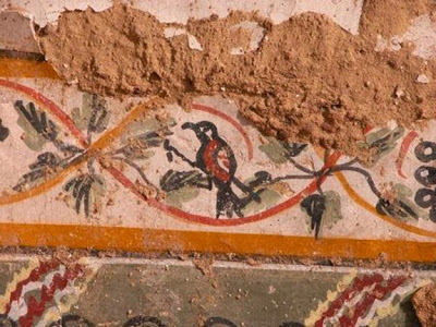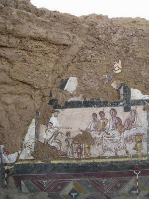 Το 1979, οι ερευνητές βρήκαν μια εικόνα των θεών του Ολύμπου στο σπίτι του Serenos και οι πρόσφατες ανασκαφές έφεραν στο φως περισσότερα έργα ζωγραφικής μεταξύ των οποίων και μια σκηνή συμποσίου με έναν άνδρα να παίζει φλάουτο. Σε ένα δωμάτιο, σχεδόν κάθε επιφάνεια «ήταν διακοσμημένη, είτε με πολύχρωμα γεωμετρικά μοτίβα ή με ζωντανές σχηματικές παραστάσεις, έτσι ώστε η εμπειρία της εισόδου στο χώρο, για πρώτη φορά κατά την αρχαιότητα θα πρέπει να ήταν συντριπτική», έγραψε η Susanna McFadden, καθηγήτρια στο πανεπιστήμιο Fordham, σε ένα βιβλίο με τίτλο «Actes du XII Colloque de l’ Association International pour la Peinture Murale Antique». (Το βιβλίο θα δημοσιευθεί από τον εκδοτικό οίκοInternazionale L’ Associazione per la Pittura murale antica).